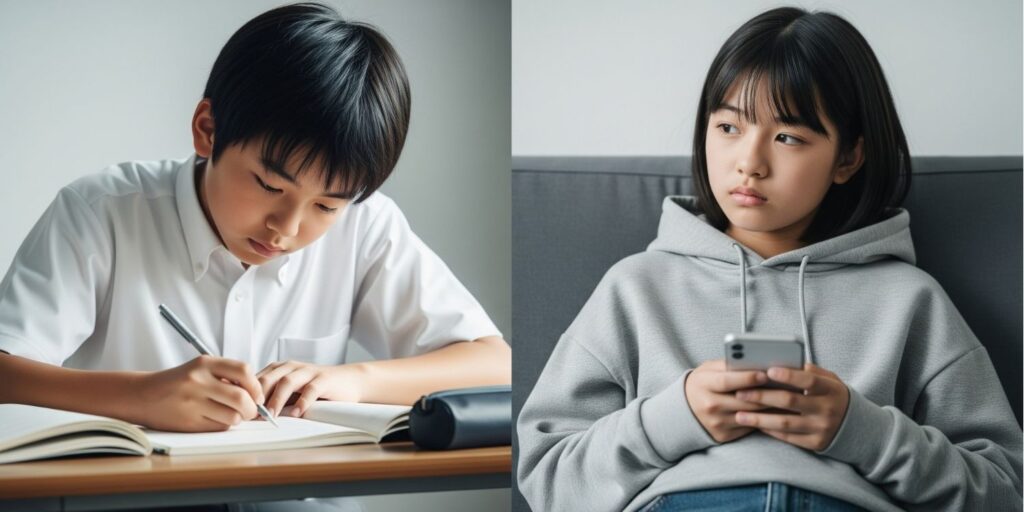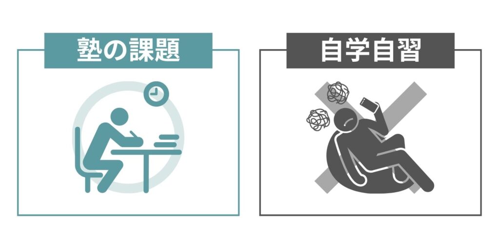 塾の宿題はこなすものの、それ以外の自主的な学習時間が家庭で確保されていないケースです。決まった時間に決まった場所で勉強する習慣がないと、気分によって学習が左右され、結果として学習量が不足しやすくなります。
