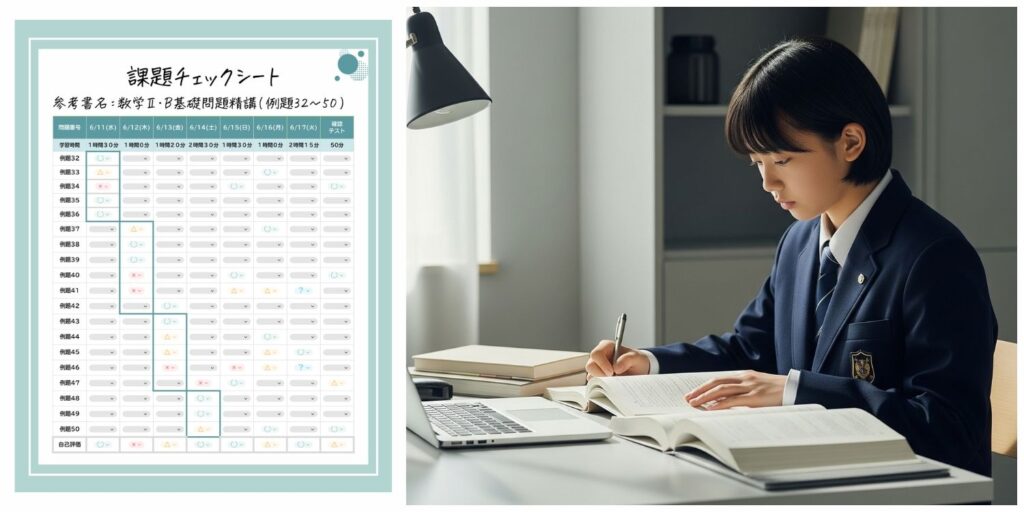 課題が明確になったら、それを達成するための**具体的な「行動計画」**を立てます。「いつ」「何を」「どれくらい」やるのかを明確にすることで、迷いなく学習に取り組めるようになります。